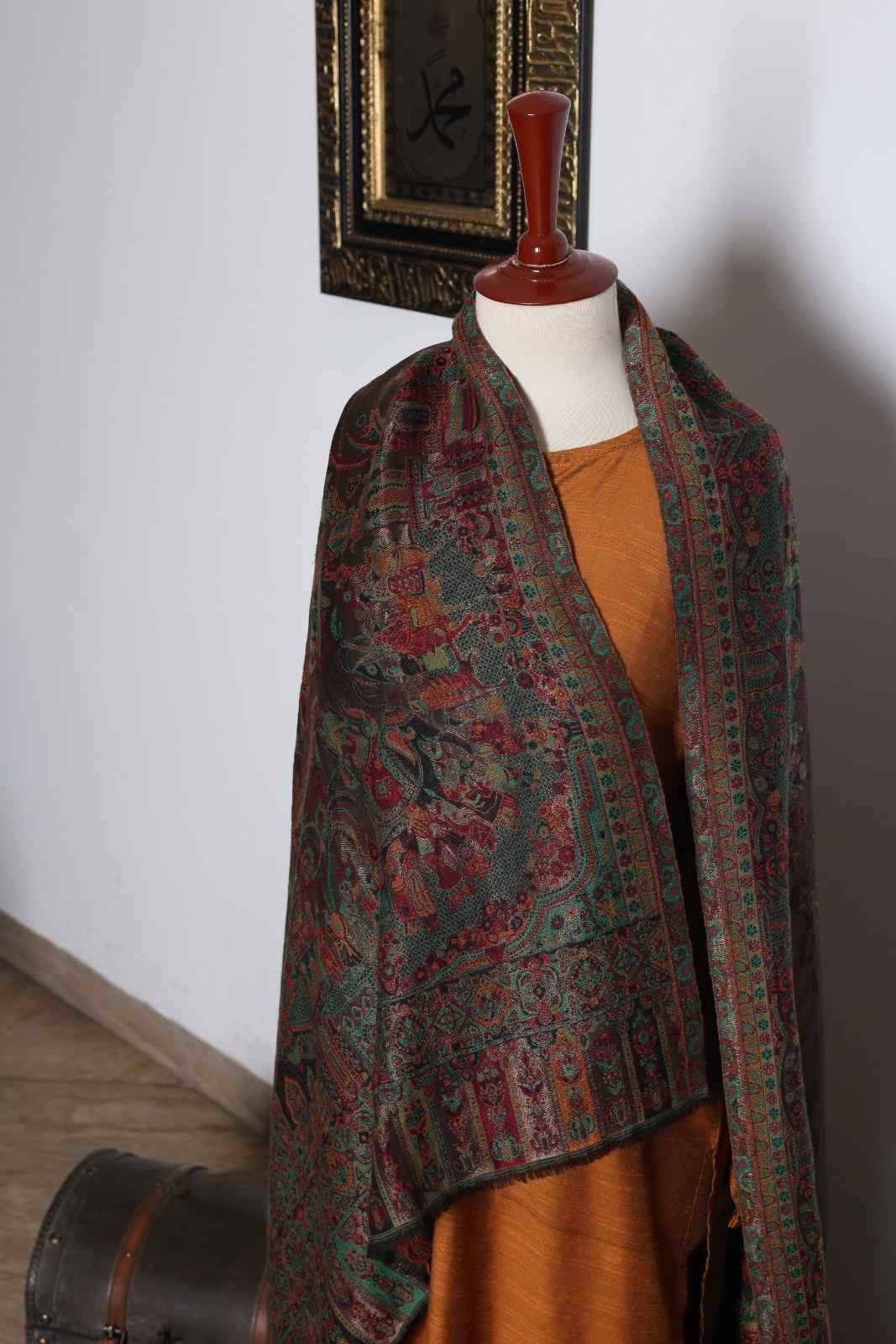 Noor Jahan Rust mughalia moonlight pashmina kani shawl
